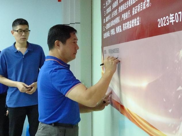 新葡萄奔驰AMG官网公司光电副总经理、精益办副主任魏光辉作为项目代表,带领全体项目成员宣誓承诺并签字,增强全体成员“学精益、做精益、落实精益增效益”的决心和魄力。