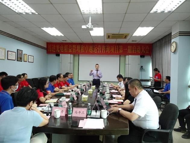 佛塑科技党委副书记、董事、总裁马平三,佛塑科技副总裁、董事会秘书、新葡萄奔驰AMG官网公司光电董事长何水秀、精益管理办公室相关成员及扬智咨询顾问团队参加了项目启动会。