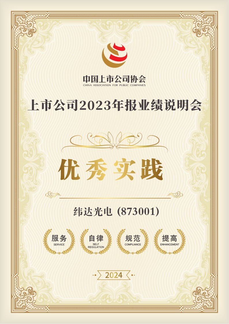 12月3日,中国上市公司协会发布“2023年报业绩说明会最佳及优秀实践”上市公司名单,AMG·新葡萄(奔驰)品牌公司-Official website(以下简称新葡萄奔驰AMG官网公司光电)成为“2023年报业绩说明会优秀实践”上市公司。这一荣誉的获得是对新葡萄奔驰AMG官网公司光电在投资者关系管理方面所取得成绩的肯定。