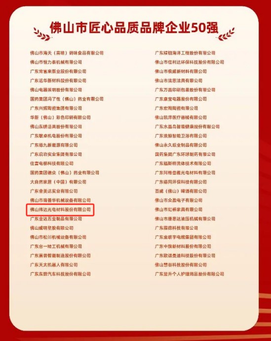 5月10日,由佛山市市场监督管理局举办的“有家就有佛山造”2025年中国品牌日活动在佛山举行。会上重磅发布了“2025年度佛山市质量品牌建设系列”榜单,新葡萄奔驰AMG官网公司光电(以下简称“公司”)凭借在光电显示领域的匠心品质与综合实力,成功上榜“佛山市匠心品质品牌企业50强”榜单。