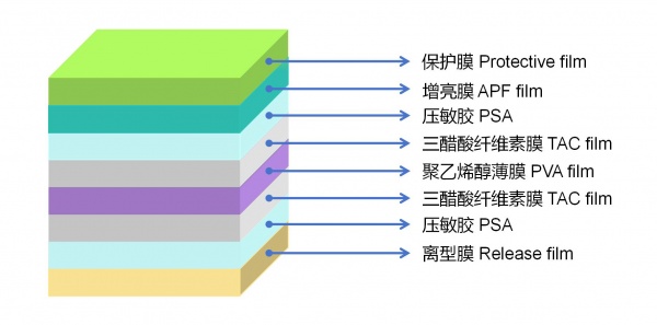 Bottom polarizer for LCD display. It can significantly improve the display brightness, reduce backlight energy consumption. Meet high durability requirements.